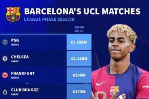 开云体育-巴萨欧冠对手身价:巴黎11.8亿欧最高,切尔西11.2亿&纽卡7.17亿