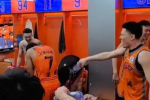 kaiyun-史诗级胜利!上海男篮赛后在更衣室疯狂庆祝 泼水哈维